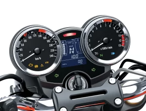 La ciclistica prevede una forcella a steli rovesciati di 41 mm di diametro regolabile nell’idraulica, e un monoammortizzatore posteriore con leveraggio orizzontale. L’impianto frenante vede pinze radiali e dischi da 300 mm all’avantreno. La dotazione comprende connettività Bluetooth tramite l’app Kawasaki Rideology e una presa USB-C integrata al manubrio.